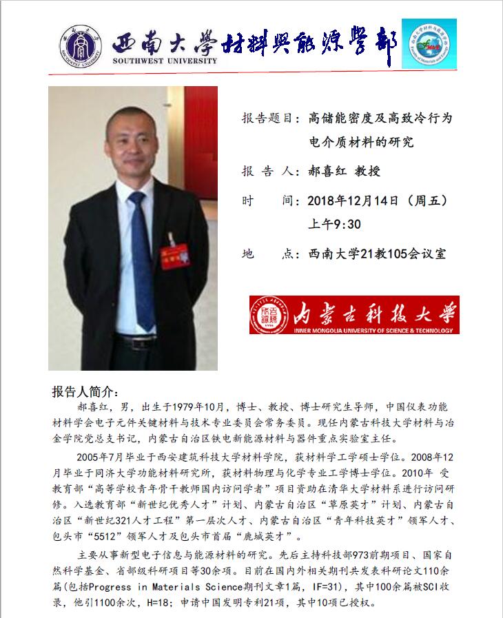 内蒙古科技大学-郝喜红: 高储能密度及致冷行为电介质材料的研究