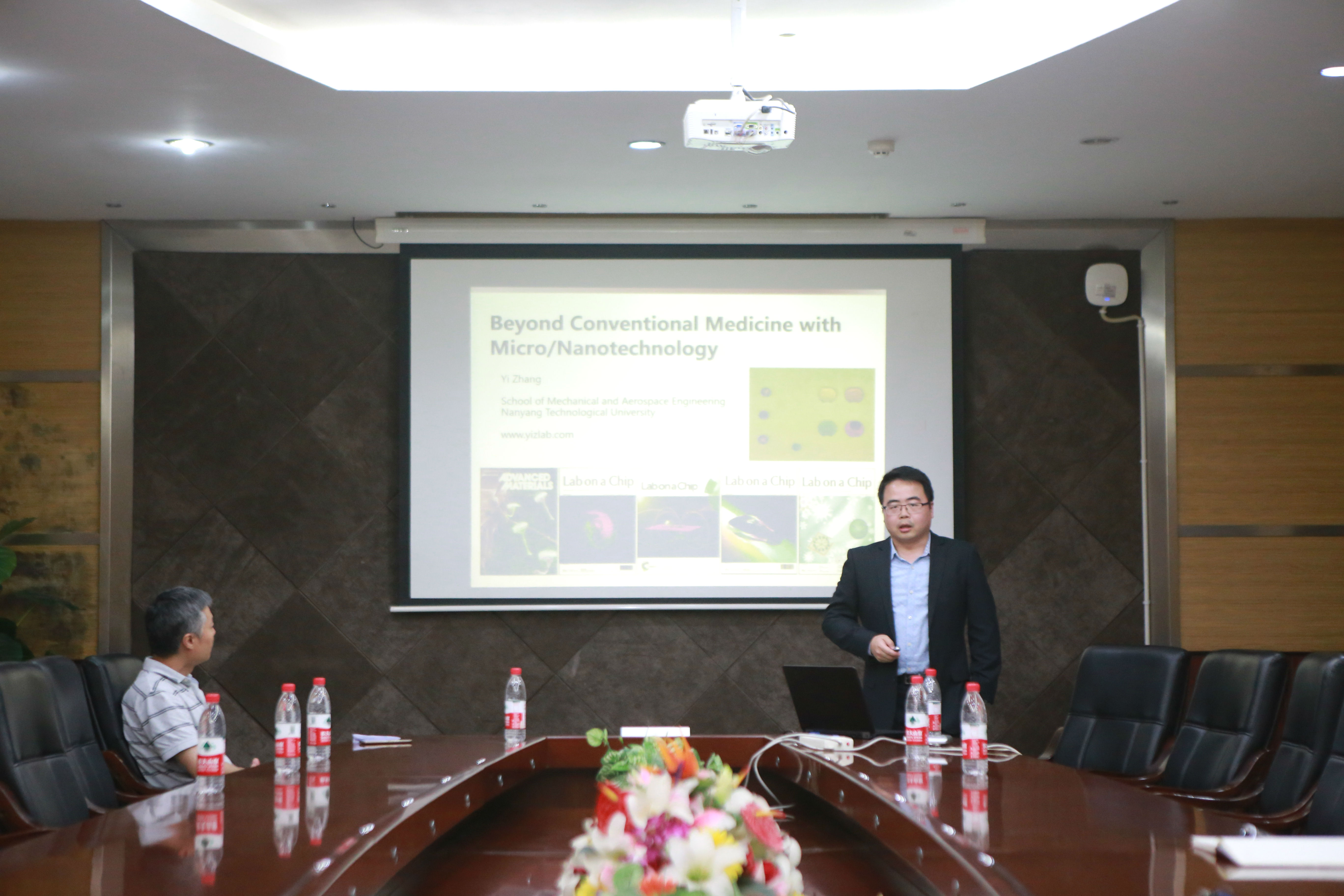 6月27日下午,新加坡南洋理工大学机械与航空航天工程学院的张翼教授来访材料与能源学部并作了题为“Beyond Conventional Medicine with Micro/Nano Technology”的报告。报告由学部康跃军教授主持,来自纳米生物医学、洁净能源科学等相关专业的部分师生参加了本次学术报告会。