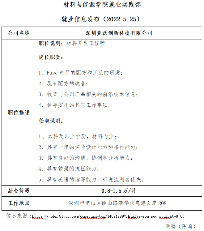 就业信息发布2022.5.25—深圳竞沃创新科技有限公司