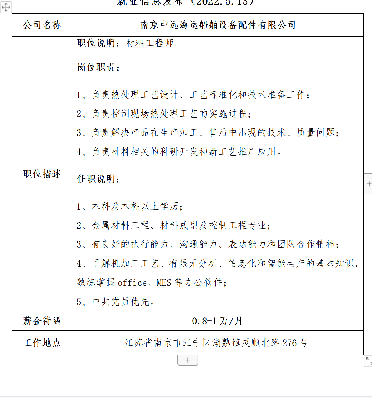 就业实践部发布—南京中远海运船舶设备配件有限公司