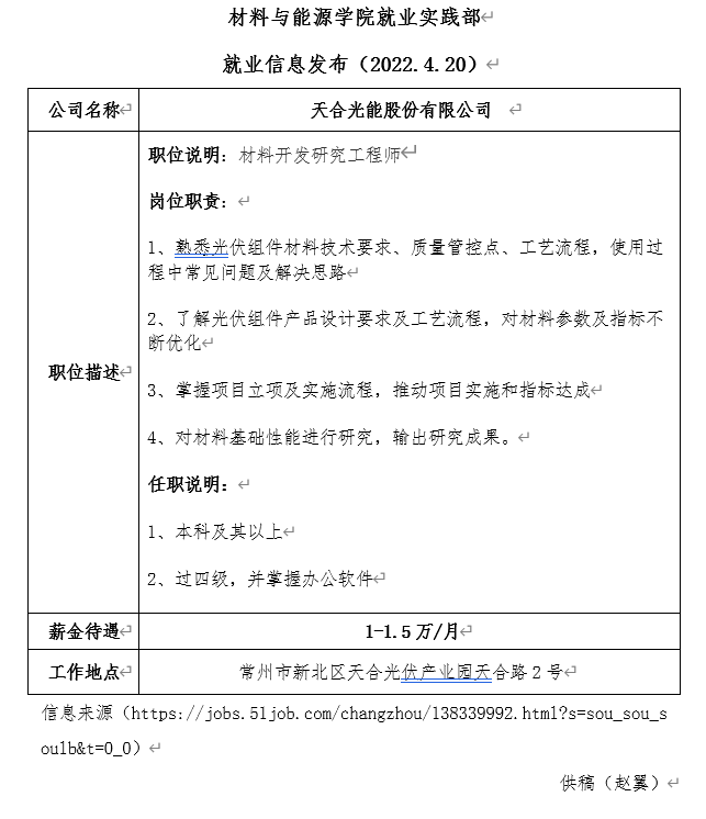 就业实践部发布(4.20)—天合光能股份有限公司