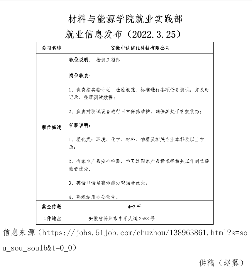 就业实践部发布(2022.3.26)—安徽中认倍佳科技有限公司