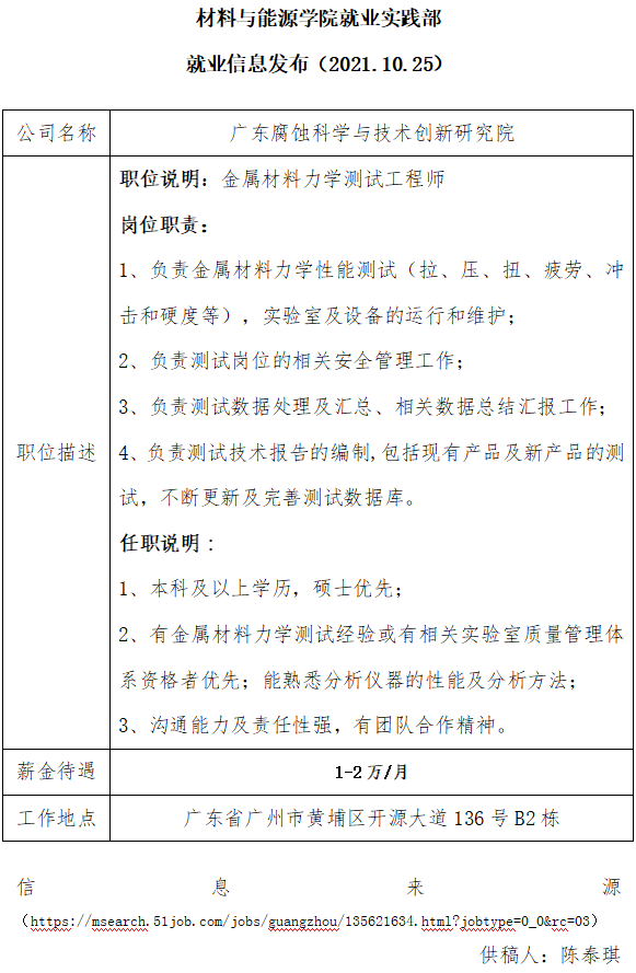 就业信息发布2021.10.25-广东腐蚀科学与技术创新研究院