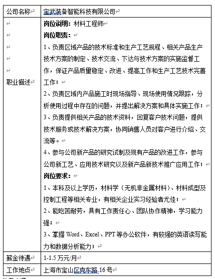 就业信息发布2021.10.5--宝武装备智能科技有限公司