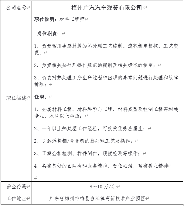 就业信息发布2021.4.20-梅州广汽汽车弹簧有限公司