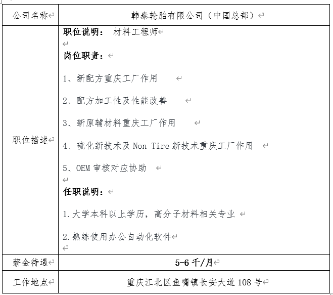 就业信息发布2021.3.1—韩泰轮胎有限公司