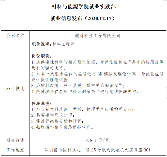 就业信息发布2020.12.16—(骏材科技工程有限公司)