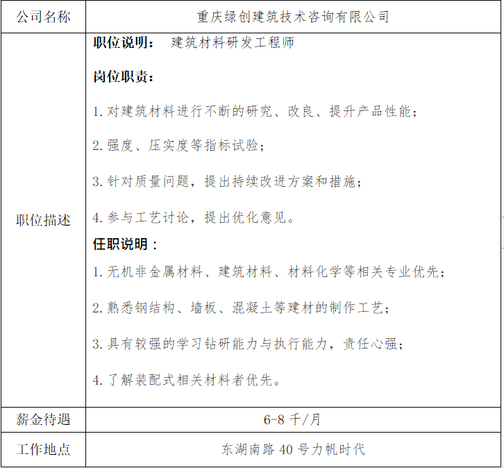 就业信息发布2020.11.1-重庆绿创建筑技术咨询有限公司