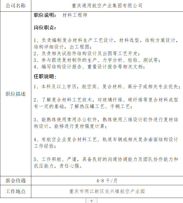 就业信息发布2020.11.22-重庆通用航空产业集团有限公司