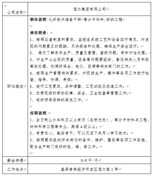 就业信息发布2020.11.3-恒力集团有限公司