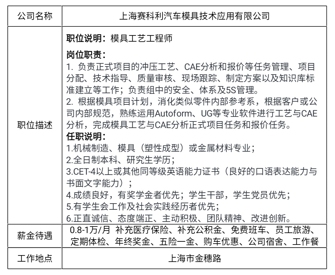 就业信息发布2020.5.31-上海赛科利汽车模具技术应用有限公司