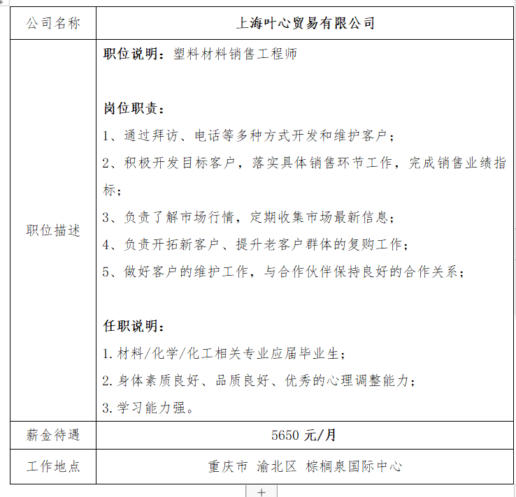 就业信息发布2020.10.04-上海叶心贸易有限公司