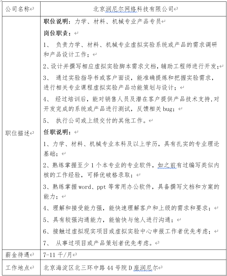 就业信息发布2020.10.12-北京润尼尔网络科技有限公司