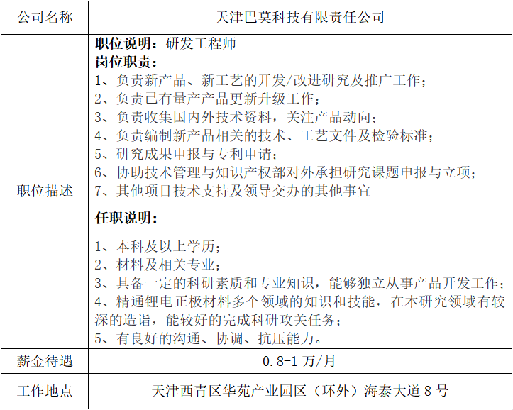 就业信息发布2020.03.21-天津巴莫科技有限责任公司