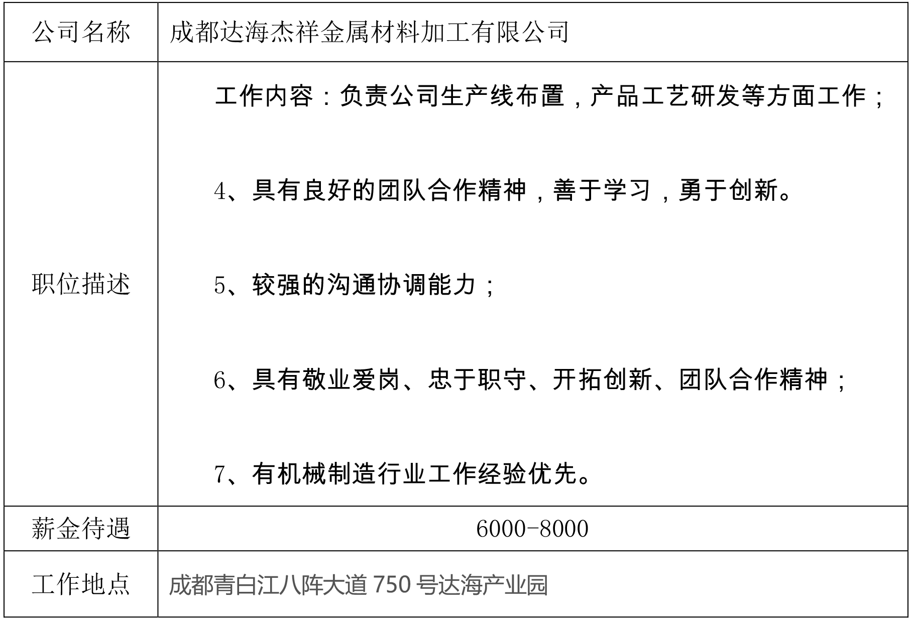 就业创业中心20190541发布-成都达海杰祥金属材料加工有限公司