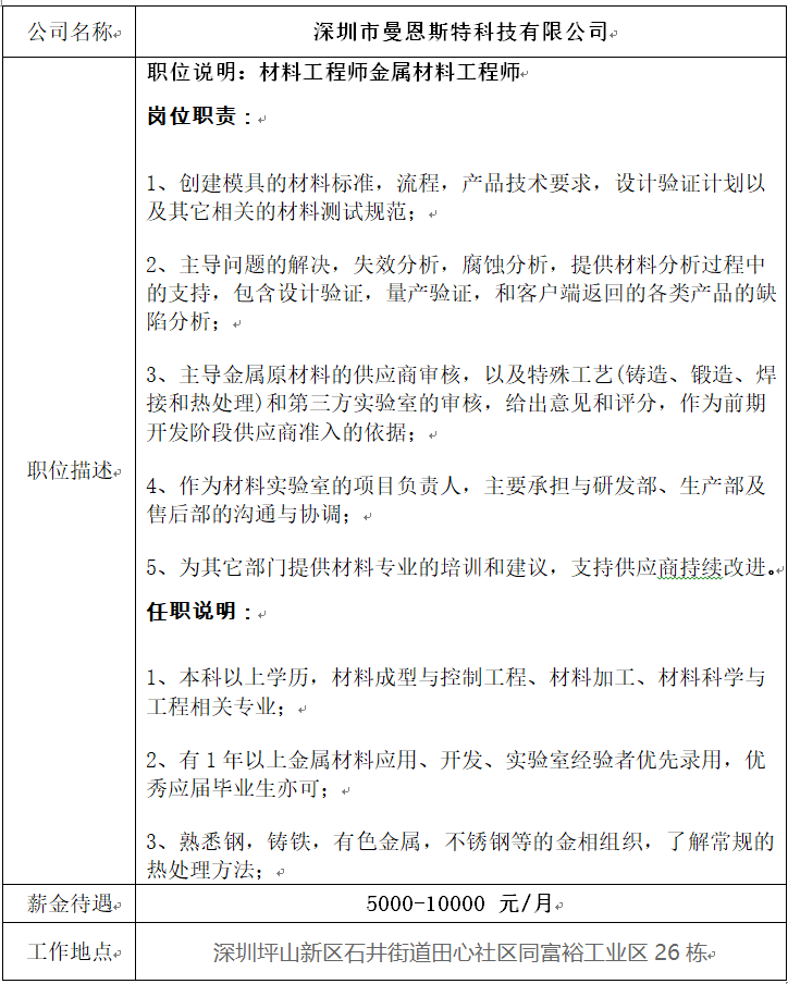 就业创业中心20181214发布——深圳市曼恩斯特科技有限公司