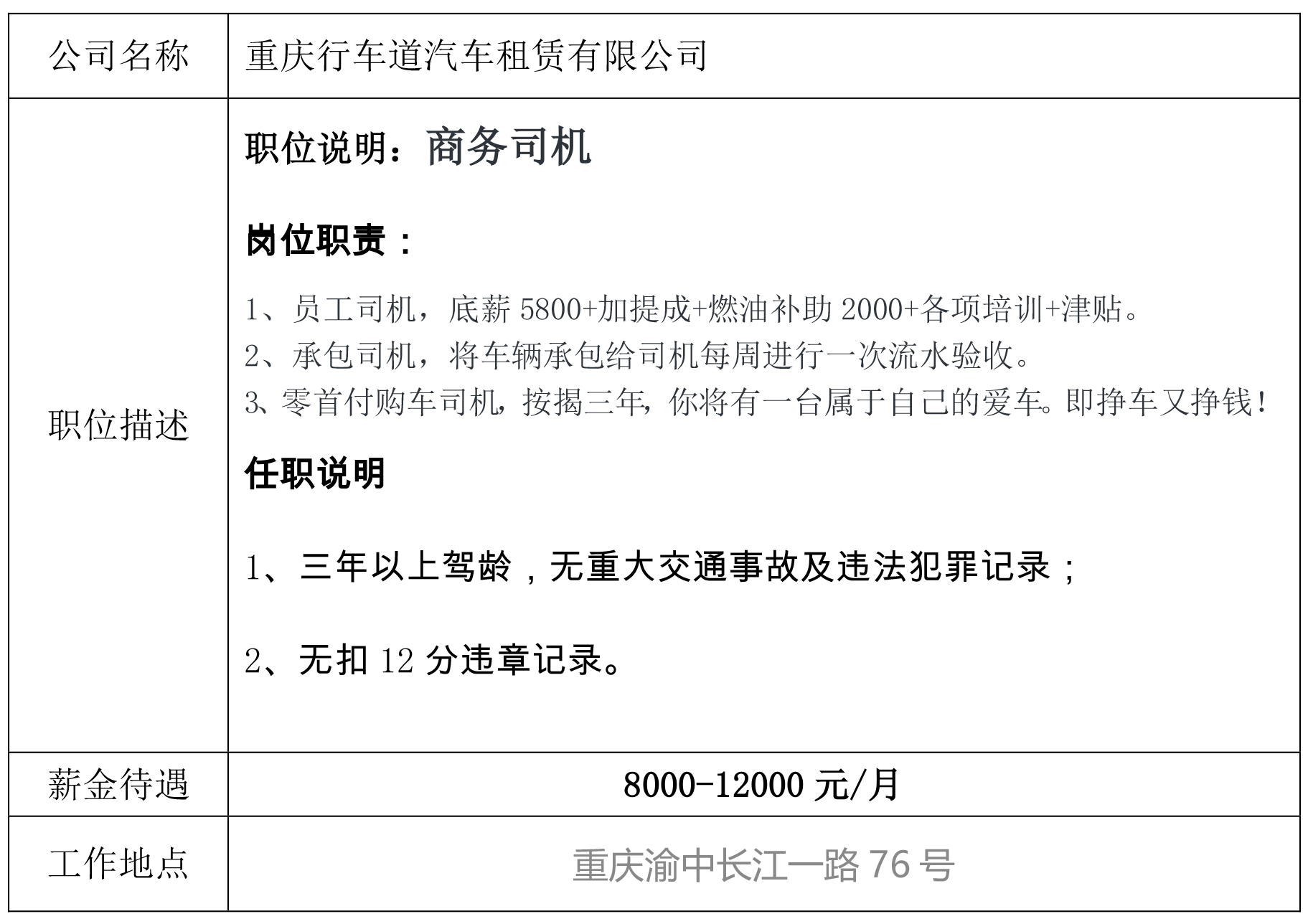就业创业中心20181113发布-重庆行车道汽车租赁有限公司