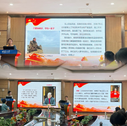 用镜头记载大事小情,用声音传达所悟所思。本次主题党日利用视频与PPT相结合的形式,观看了专题视频《奋斗者 正青春 培根铸魂肩使命》并学习了《习近平:坚持党的领导传承红色基因扎根中国大地 走出一条建设中国特色世界一流大学新路》重要文件精神。回顾习近平总书记对广大青年的殷殷嘱托,聚焦那些正在挥洒青春的奋斗者,视频讲述了3个有温度,有情怀,有力量的青春故事,来回答我们青年应该成为什么样的人,应该如何放飞青春梦想担待新时代的青春责任。人生的扣子从一开始就要扣好,广大青年要树立社会主义核心价值观,要勤学习,明大德,立大志,这样才会成大才,担大任,在亿万人的共同奋斗中实现青年人的人生价值。