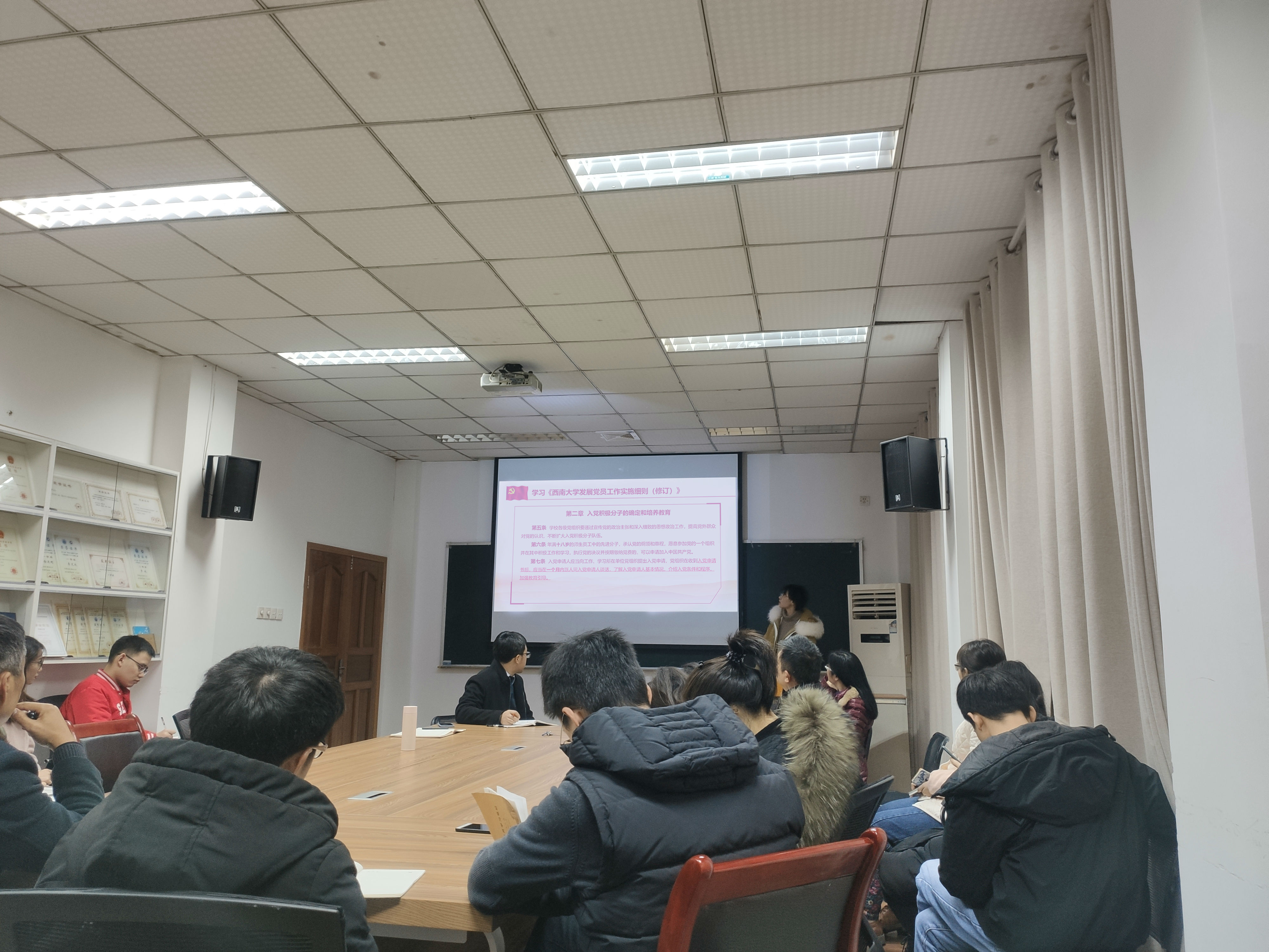 会议伊始,李红书记结合《中国共产党章程》、《中国共产党支部工作条例(试行)》、《中国共产党普通高等学校基层组织工作条例》《新时代高公司党建“双创”工作重点任务指南(基层党支部)等文件精神,就党的组织机构、党支部的基本任务和主要职责、党支部委员会的自身建设、党员日常教育管理的主要方式等方面做了详细解读,并对党支部工作中的注意事项、做好学校基层党组织和党员诊断行动等近期工作安排做了一一强调说明。