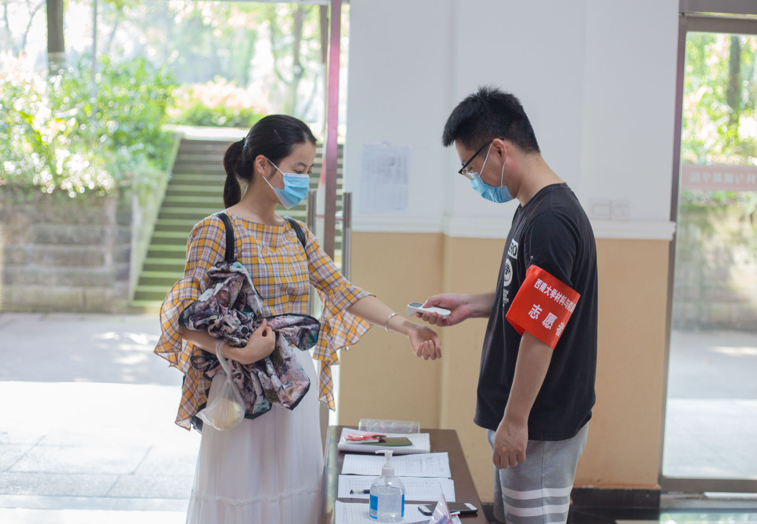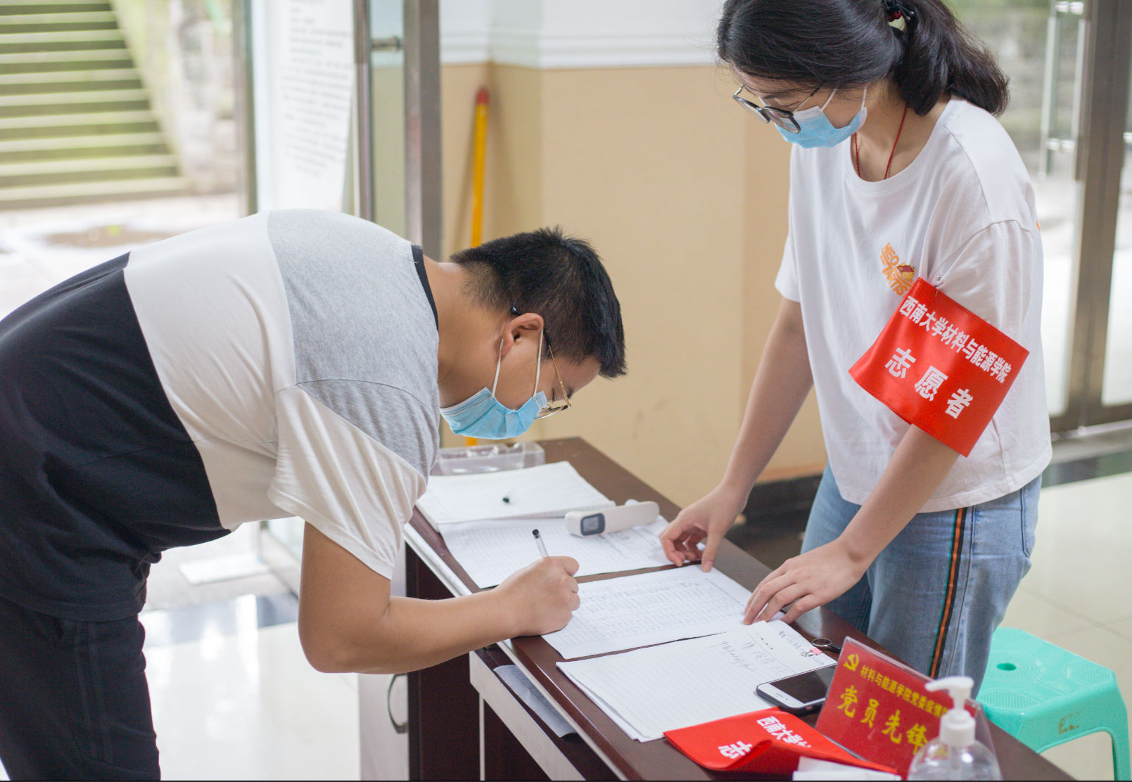 “您好,请出示一下您的校园一卡通,并主动接受体温检查测试”“请佩戴好口罩,有序排队,保持适当间距”……在必一运动官网21教实验室门口,戴着“必一运动官网志愿者”字样红色袖章的党员志愿者正在对进入实验室的人员依次测量体温,逐一做好登记。