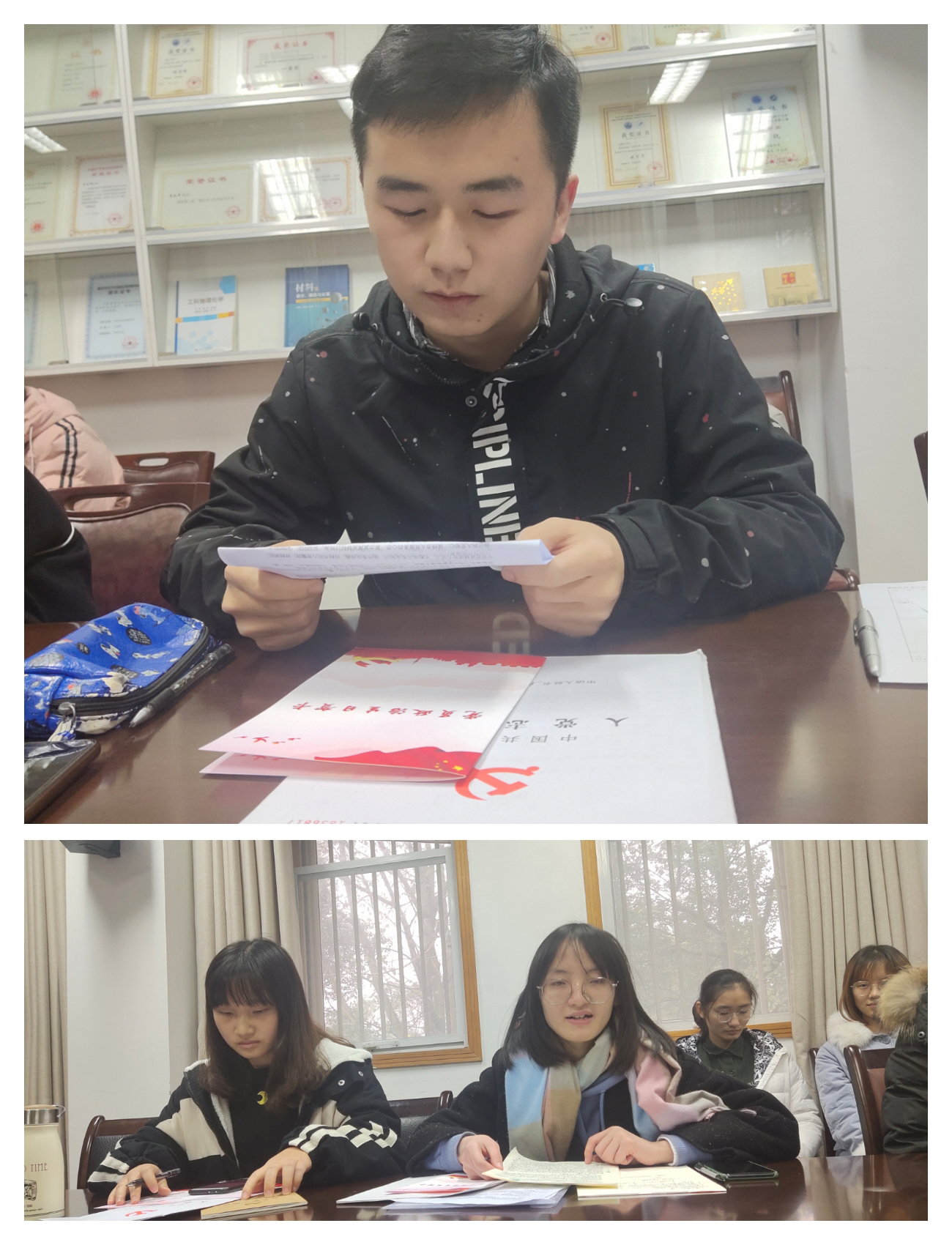 仪式第一项,重读一遍入党志愿书。全体同志纷纷回顾曾经写下的入党志愿书,并将自己读到最深刻的一段话分享给大家,一起找寻初心。李静川同志在入党志愿书中写道:“既然我选择了党,我就做好为之奋斗一生,为之奉献一切的觉悟(准备),无论是风雨飘摇还是岁月静好,我将始终如一的忠于党、忠于国家、忠于人民,这是我毕生的信仰”。“没有理想信念,人就会碌碌无为。作为一名积极向上的老员工,我崇敬党并努力向党组织靠拢,在学习和生活上严格要求自己,团结同学,乐于助人,未来我希望在党组织领导下,充分发挥自己潜能,为国家、为社会、为人民做出更大贡献”,颜纳雨同志在入党志愿书中这样写道。袁琪同志写道:“在认识和了解党的过程中,我发现了人民群众选择中国共产党的理由。中国共产党是一个为中国人民谋幸福,为中华民族谋复兴的党;是一个永远用人民同呼吸、共命运、心连心的党,是一个永远把人民对美好生活向往作为奋斗目标的党”;何焕生同志写道:“我可以问心无愧的告诉组织,此刻,我做到了纯粹,做到了眼里看到的只有党的事业,心里装的只有人民的期盼。今天,我被组织接纳了,既是光荣也是沉甸甸的责任。我将不忘初心,牢记使命,永葆共产党人的本色与热血,在实现中国梦的生动实践中放飞青春梦想,在为人民利益的不懈奋斗中书写人生华章。”