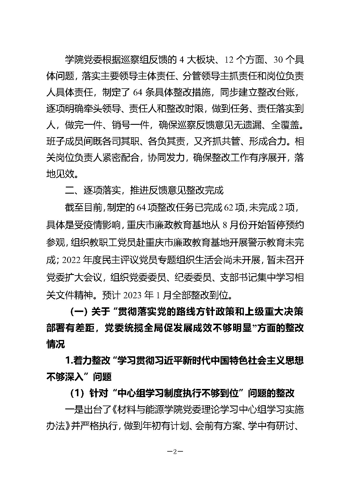 中共必一运动官网委员会关于落实公司党委第二巡察组巡察反馈意...