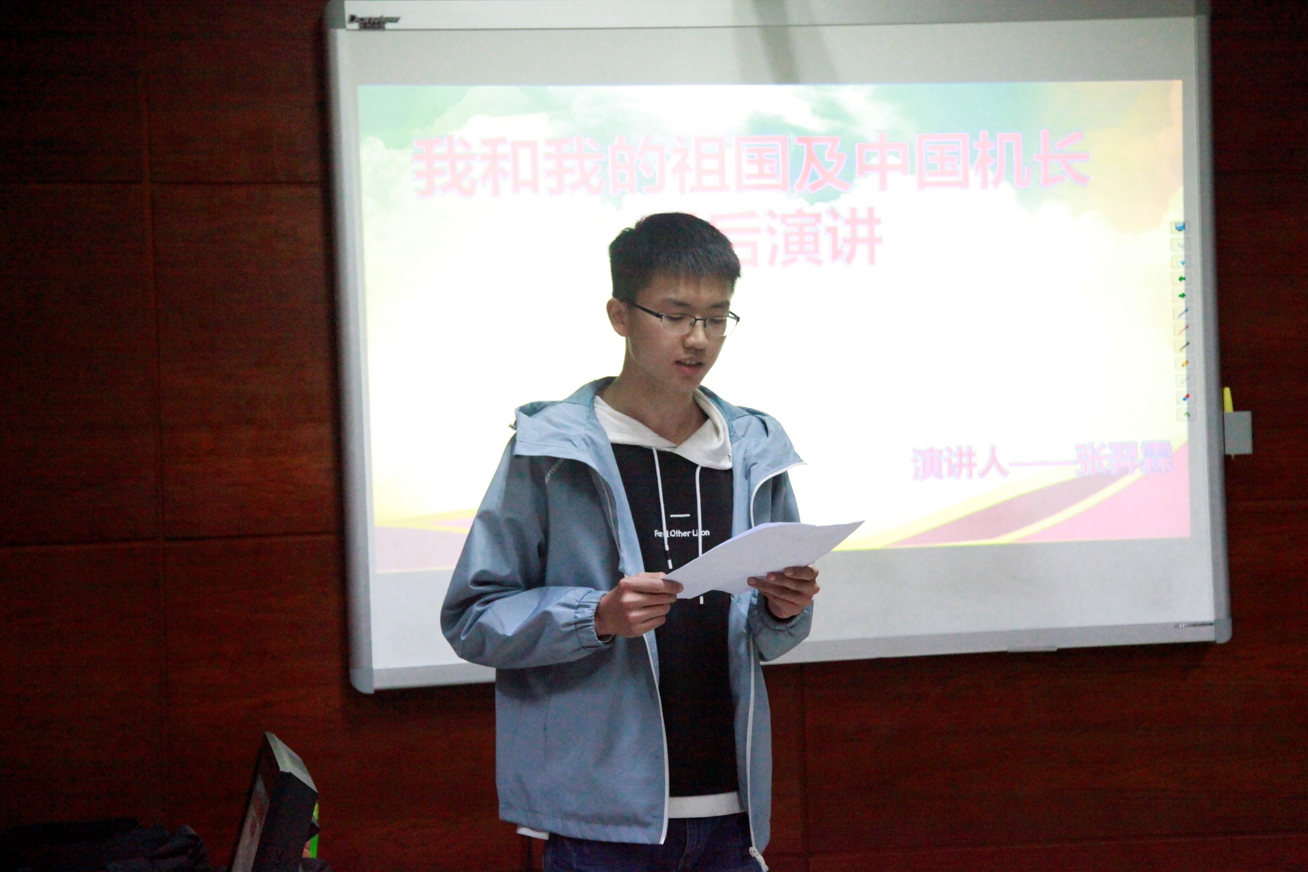 与会同学结合自身体会,以及提前观看的《我和我的祖国》与《中国机长》两部电影,上台进行展示与互动交流。