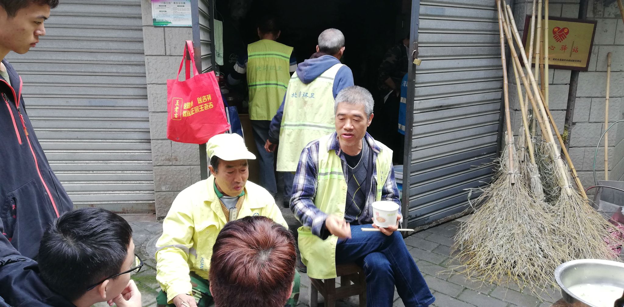 中午11点,环卫工人下班来到休息处,迎接他们的便是热气腾腾的饺子。能够在寒冷的冬日里给予他们一些温暖。几位环卫工人在吃饺子之余,还与一班的同学谈起了他们在上个世纪六七十年代所经历过的生活,并教育同学们要努力地学习、利用好大学这个平台为自己的以后做好准备。这些话语,让一班同学收获颇丰。