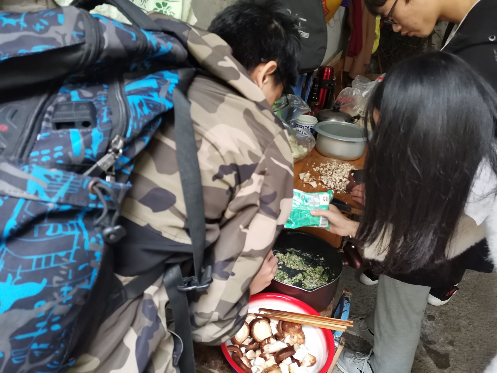 一班同学们步行至新天花园社区,在与之前联系好的负责人见面后便分成了两拨,一些人去帮助环卫工人打扫街道,另一些人在环卫工人平时休息的地方为他们准备冬日里的温暖——饺子。同学们将提前买好的菜洗净切好,并与肉馅充分搅拌,然后加入调料做成饺子馅,在一切准备就绪后,他们开始为环卫工人包饺子。在一班同学们的分工合作下,不仅将街道打扫干净,还准备好了环卫工人的午餐。