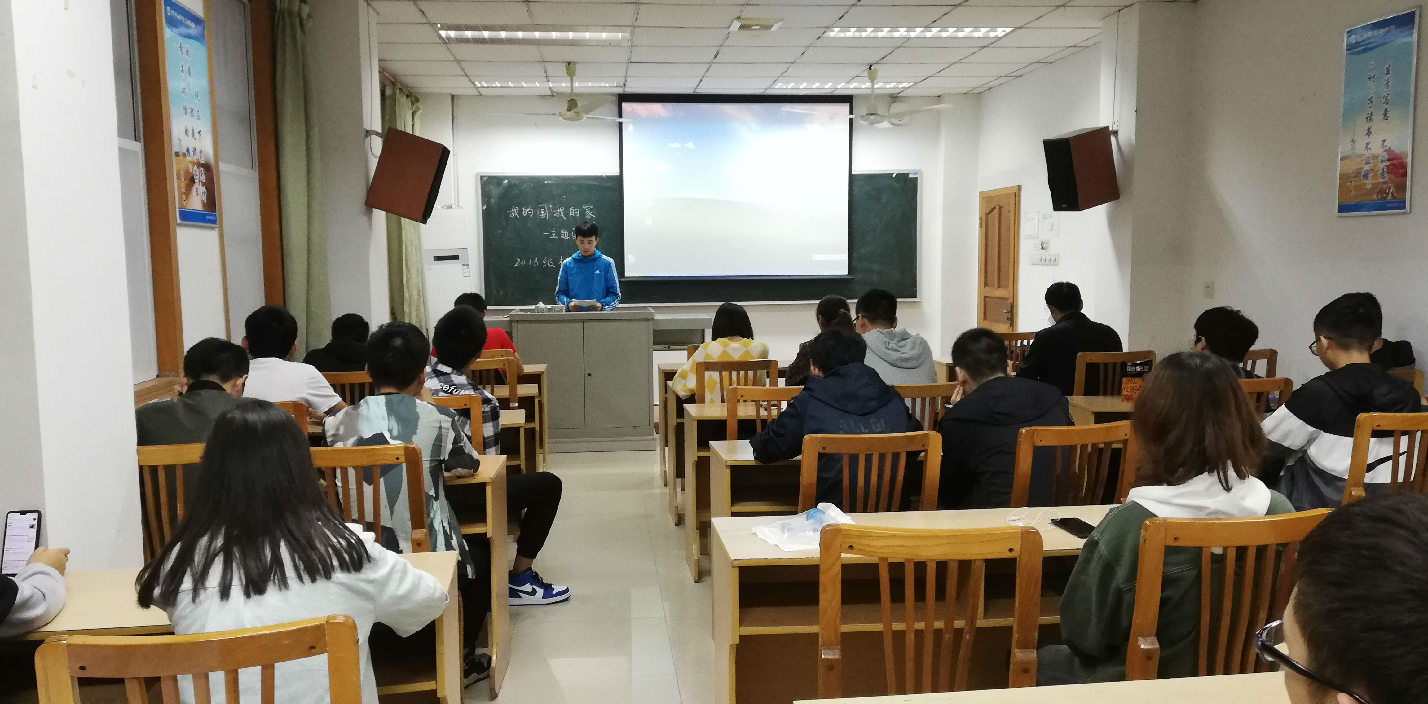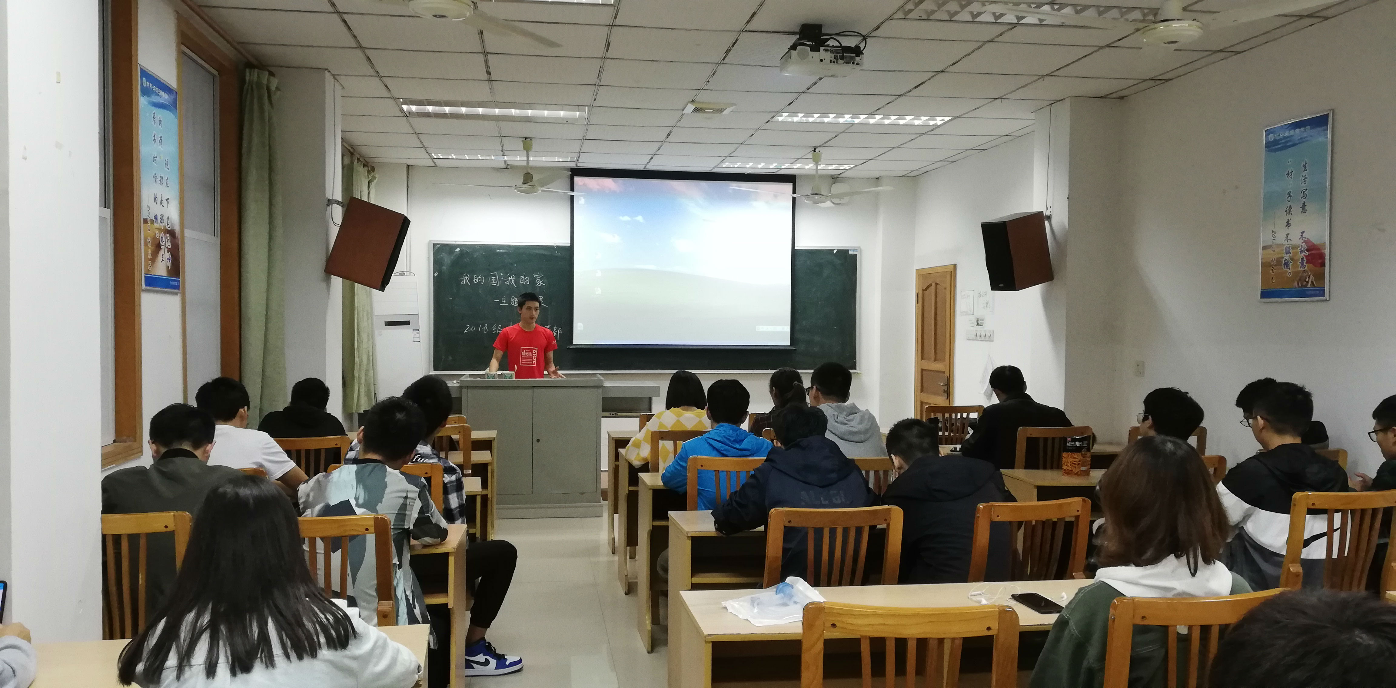 必一运动官网团委员工会10月10日电(记者 卢佳玥 编辑 卢佳玥)10月10日下午,2018级材料一团支部以“我的国,我的家”为主题的团课在第22教学楼105室举行。