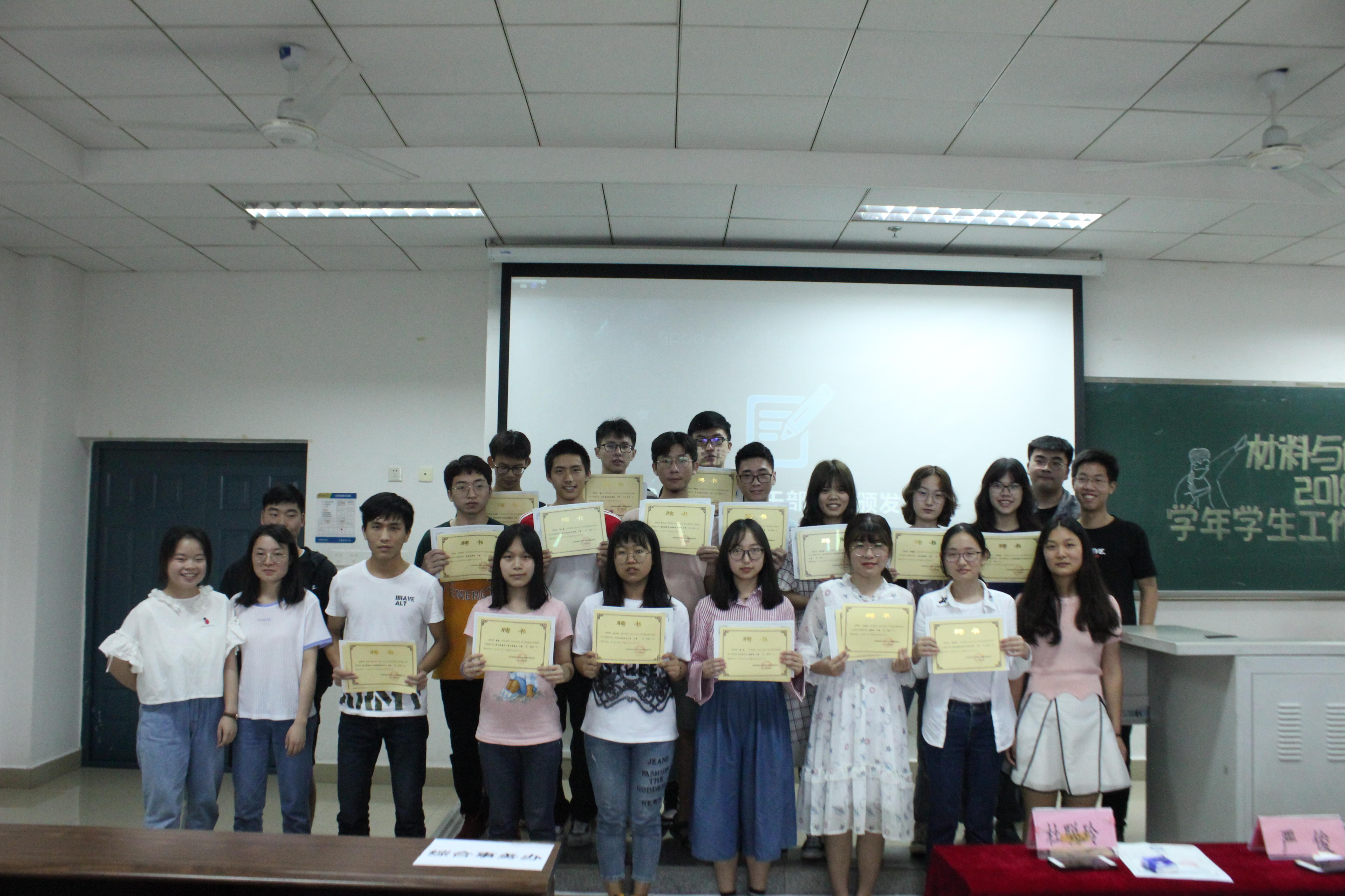 大会第六项,由团委书记帅丁祺宣布表彰决定。对过去一年辛勤工作的部门、干部及干事个人进行表彰并颁奖。第七项,为主席团及各部门干部干事颁发聘书。