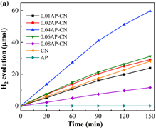 此外,还成功地合成了Ag3PO4/g-C3N4纳米复合光催化剂,并且在无Pt助催化剂情况下,0.04AP-CN复合材料在可见光下的最佳光催化H2析出速率为89.4μmol/ h,是纯g-C3N4(26.7μmol/ h)的3.34倍。相关成果以“Z-Scheme Ag3PO4/g-C3N4 Nanocomposites for Robust Cocatalyst-Free Photocatalytic H2 Evolution Under Visible Light Irradiation”为题发表在期刊《CATALYSIS LETTERS》上(DOI 10.1007/s10562-019-02704-y),影响因子为2.911。研究生隆丹为论文第一作者,张永平为通讯作者。