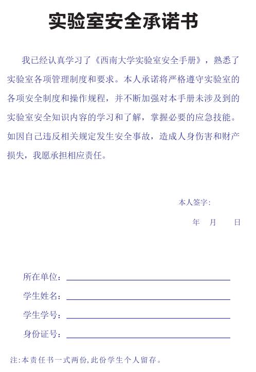 图三:实验室安全承诺书模板。