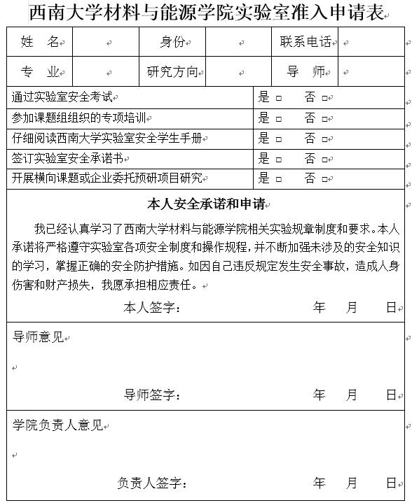七、必一运动实验室安全教育培训合格证、实验室安全承诺书和《必一运动官网实验室准入申请表》一并提交给学院办公室审核、签字和盖章。
