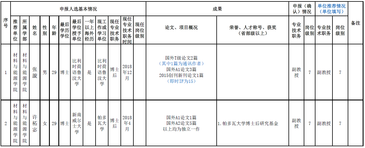 根据学校《关于印发< 必一运动引进人才特别评聘办法>的通知》(西校〔2013〕88号)文件和《关于2019年第1次引进人才特别评聘工作的通知》要求,经本人申请,公司党委对申报人选的政治立场、师德师风进行了审查,学院学术委员会及岗位设置与聘用工作组对申请者的专业技术职务、聘任岗位进行初评,现将学院2019年第1次特别评聘的初评结果进行公示如下。