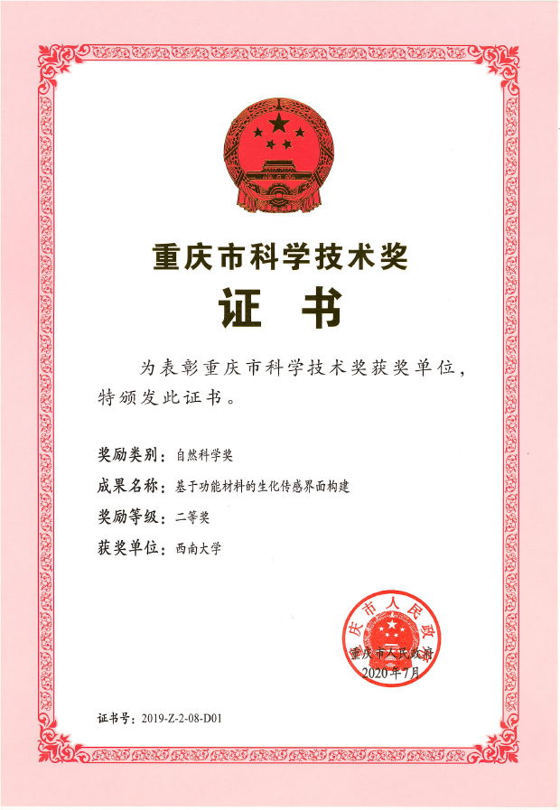 胡卫华老师获得重庆市自...