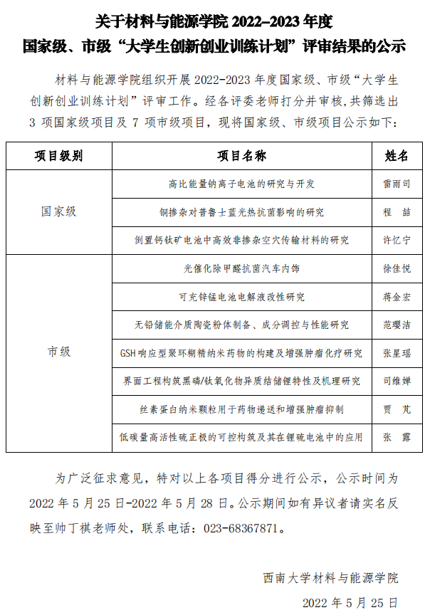 2022-2023年度老员工创新创业训练计划国家级、市级评审结果公示