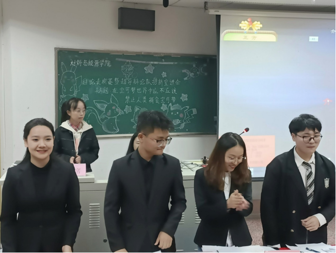 首先进行的是辩论队开幕和招新。主持人借用神奇宝贝的视频激起学院员工兴趣的同时引出本场辩论的论题——“宝可梦应不应该被人类捕食”。其后,超导辩论队队长朱玺平向大家介绍了辩论队的资料以及加入流程,许多同学对辩论队表现出自己浓厚的兴趣,一些同学已经迫不及待想要报名。