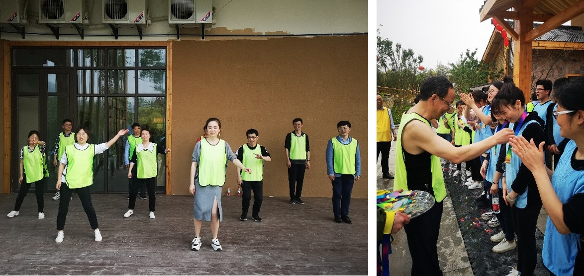 简单热身后,进行随机分组,每一小组设立首领,并设计出具有独具特色的队名、队旗、口号和队型并进行展示。在随后的模仿达人秀、表演巨星、放飞自我、环游世界、C位出道等团建活动项目中,大家以斗志昂扬、团结协作的精神风貌,在全体队员的配合下成功完成各项挑战。活动现场,欢笑声、喝彩声不绝于耳,一幅幅团结拼搏、锐意进取、温馨和谐的画面让人难以忘怀。
