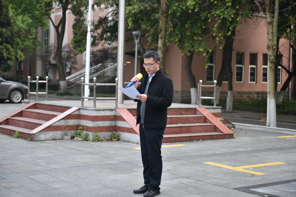 升旗完毕,首先由员工代表、2020级年级长刘晓喆同学在国旗下发言,她鼓励同学们继续努力,在接下来的学习生活当中不断向前。