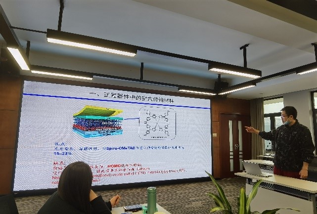 交流研讨会上,研究院执行经理康跃军教授首先发言,他着重对十九届五中全会精神进行了解读,号召大家积极响应党中央的政策引导,坚持“四个面向”,以科技创新、人才培养为己任,敢于原创、实践与成果转化。随后,按照会议拟定流程,包淑娟、汪敏、吴飞、陈久存、李天浩、刘婧、牛玉斌等新老教师、党员同志们,依次对近期的科研成果、新材料发展动向及成果转化经验做了详细的汇报,同时开展了交流讨论,力求加强不同课题组间的实质性合作,解决各自研究瓶颈问题,实现高水平成果突破,同时让老师们了解成果转化过程,面临的问题以及解决方式。