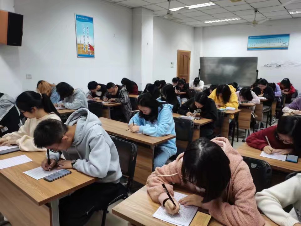 此次书法大赛分为硬笔和软笔两个环节进行。硬笔方面,材子们都满怀激情,用心书写。他们专心致志,聚精会神,展现出良好书写姿态。所写作品笔画流畅,横平竖直,结构匀称,整体美观,在短短的时间内涌现出一幅幅佳作。