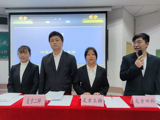 此次决赛的主题为“没有上进心是错还是不是错?”。在主持人介绍完辩论规则后,辩论赛在同学们的掌声拉开序幕。