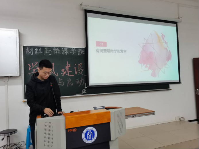 会议开始,员工会主席董号南学长发言,学长首先讲明本活动的原因,即对同学们的学习有帮助。紧接着学长对之前的学风建设活动进行了总结,即内容单一,员工参与度不高,考勤不太认真,学长建议可以写电影观后感,进行错题总结等。
