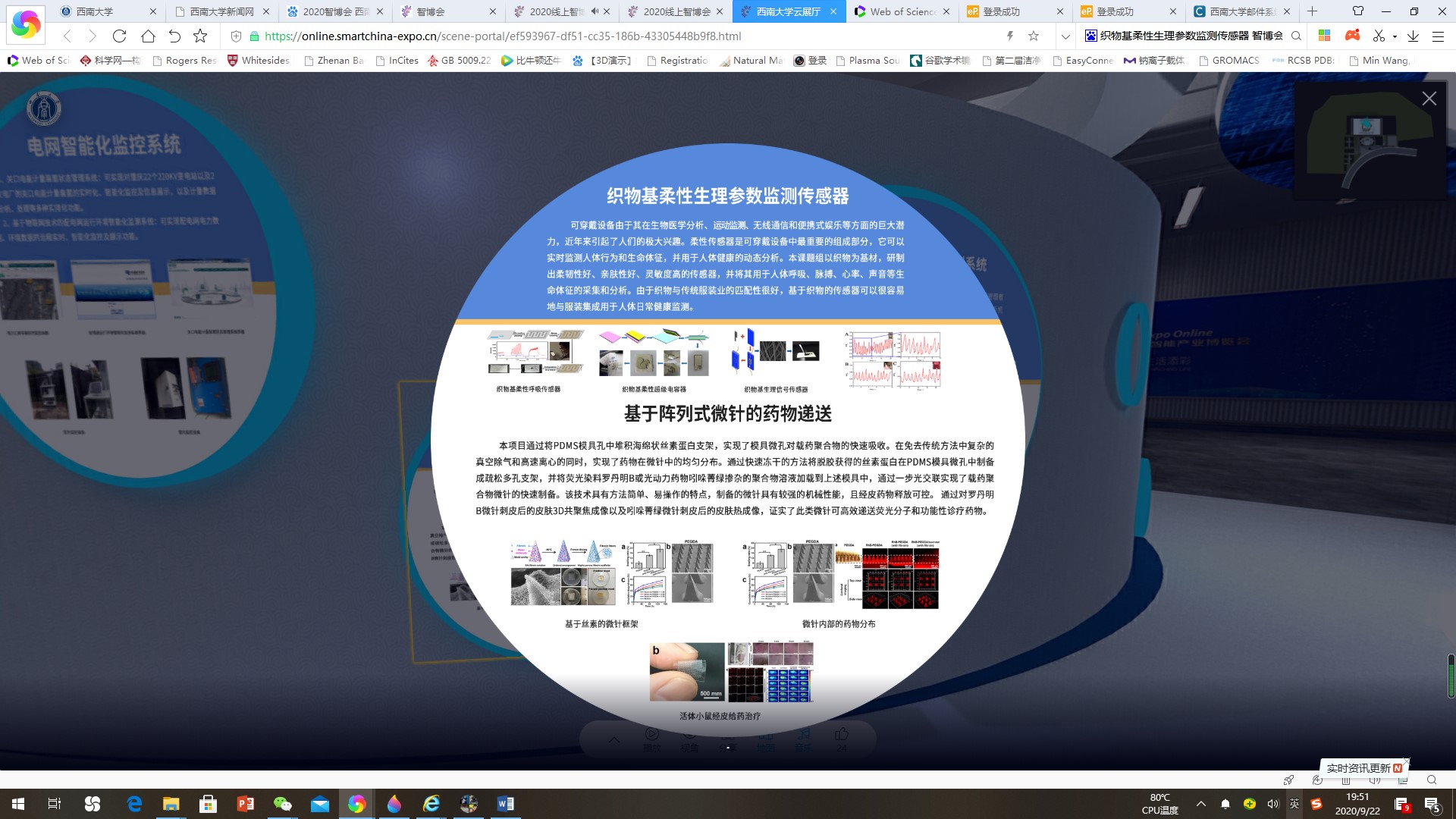 必一运动作为市内重点参展高校承担了部分招展、展出及发布活动等工作。公司积极配合学校工作,并组织了相关科技成果参展。鲁志松教授课题组成果“织物基柔性生理参数传感器”,康跃军教授、薛鹏副教授课题组成果“基于阵列式微针的药物递送”成功亮相本次展会必一运动云展厅,突出展示了公司在智能材料创制、智能技术开发方面的优势,获得了社会各界的好评。