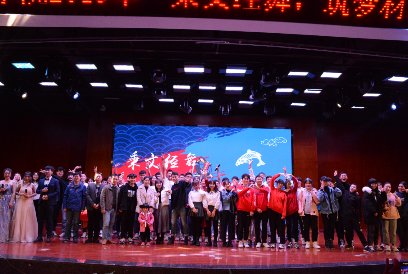 时针指向七点,期待已久的晚会正式拉开序幕。第一个节目是主席团舞蹈,团委员工会主席团成员用他们的舞姿火热了观众的激情,点燃了现场的氛围。随后而来的是古典舞《云水逸》,轻灵而优雅的舞蹈如水流于心,云流于境, 翩翩婀娜的舞姿让观众仿佛自身也已置入山水之中,如痴如醉。之后《有话好好说》相声节目则为同学们带来了欢乐,用一连串语言上的误会逗得同学们哈哈大笑。韩舞串烧icy和kill this love用火热的劲舞将气氛带至高潮,迷幻的灯光中,似乎一切不快都被抛诸脑后。而后歌曲串烧《思恋》又勾起了同学们心底最深处的情愫,表演者动情的演唱,将观众也带进了浓浓的思恋当中。思恋是远隔天涯的爱,然之后《水星记》给同学们带来的却是无声而苦涩的爱。一首《水星记》再度将气氛带至另一重顶峰,那是深沉而凝重的爱的滋味。部长舞蹈串烧《龙的传人、恭喜你发财》随之而至,部长们欢快而极具动感的动作使人身心愉悦,只想随之起舞。第十一个节目是部长舞蹈串烧《野狼disco》,伴随着那红遍大江南北的前奏响起,部长们用属于老员工的那份青春活力,引发起同学们对于青春的共鸣。最后,晚会在大合唱《国家》的歌声中迎来结束,到场的老师和参与本次晚会工作的同学上场合影。
