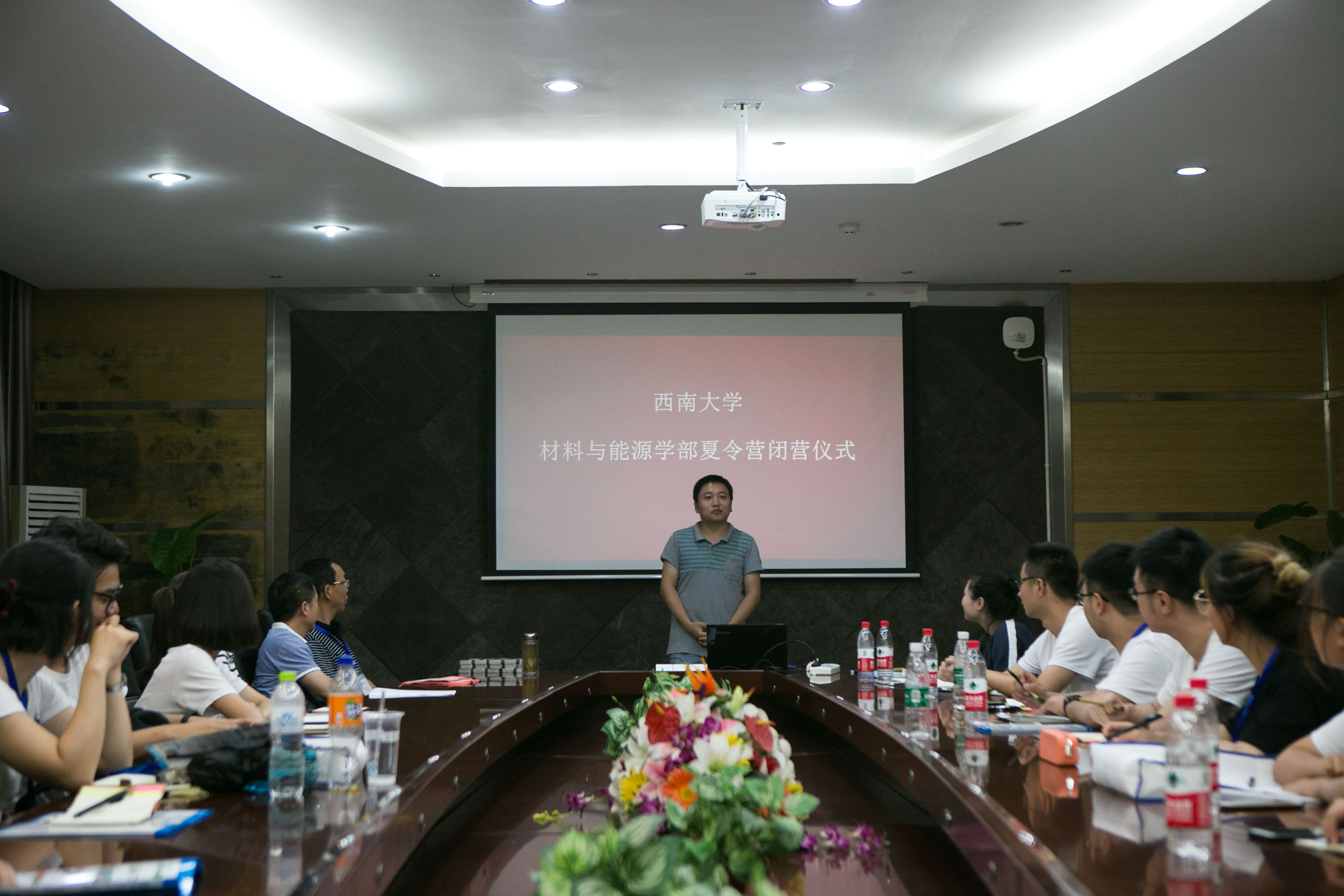 7月18日下午4点,必一运动材料与能源学部2018年老员工夏令营活动闭幕仪式于21教205举行。材料与能源学部党委书记杨劲、部长助理徐立群副教授、宋群梁教授、教学秘书唐梅,2018年夏令营志愿者以及所有营员参加了此次闭幕式。闭幕式由徐立群副教授主持。