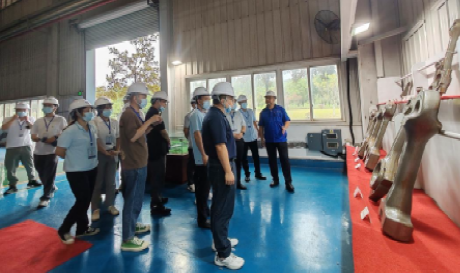 长征重工是中国船舶集团旗下大型现代化装备制造企业,始建于1967年,是国家重点布局的轨道交通装备、大型铸锻件及军工配套产品研制基地,中国最大的船用集装箱绑扎件和柴油机连杆锻件供应商,荣获"国家高新技术企业""全国五一劳动奖状"等称号,是西南地区高端装备制造的标杆企业。作为"强国行"专项行动的重要实践环节,教师党员们深入长征重工核心生产区域,实地观摩了铁路货车整车制造基地和大型锻件生产线,重点调研了"绿色锻造"技术体系,特别是企业自主研发的余热回收系统与低碳锻造工艺,为学院"双碳"目标下的材料研究提供了工业实践样本。