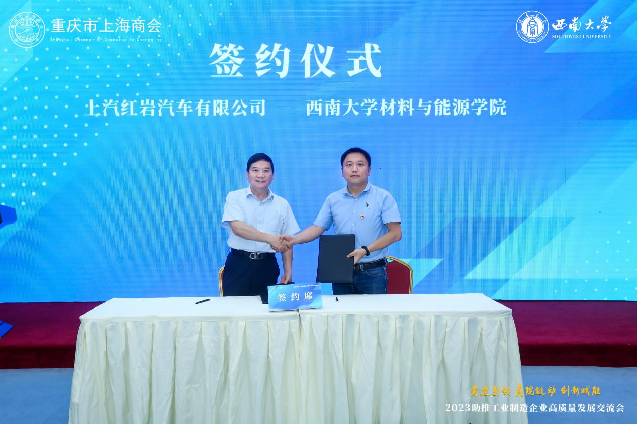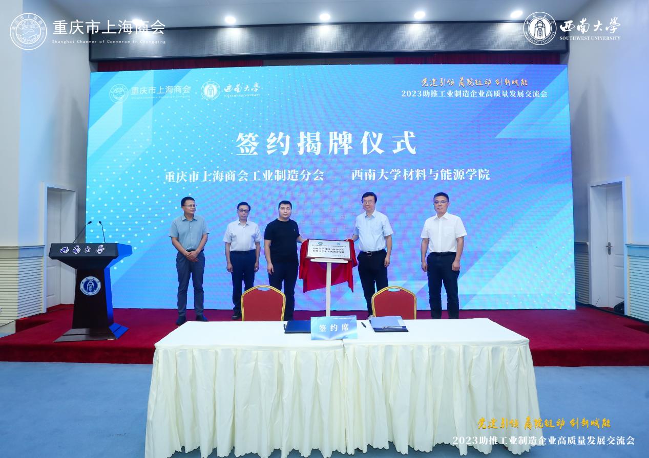 为把深入学习贯彻习近平新时代中国特色社会主义思想主题教育走深走实,谋划院商企深度合作,推进人才协同培养和科技成果转化,推动工业制造企业高质量发展,6月29日下午,学院和重庆市上海商会共同举办以“党建引领 商院链动 创新赋能”为主题的“2023助推工业制造企业高质量发展交流会”,并签署合作协议。公司党委书记梁武、经理徐茂文,重庆市上海商会执行会长沈仁刚、副秘书长姚庆伟、工业制造分会会长陈涛,学院专家教授及重庆市上海商会近90名企业家参加活动。