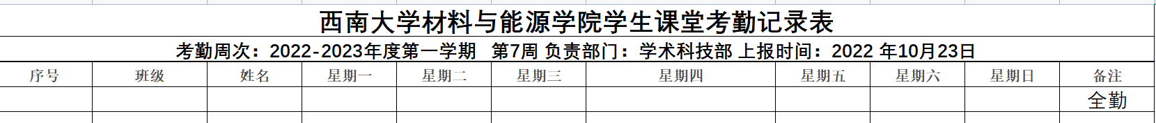 2022-2023年度第一学期必一运动官网第七周考勤表
